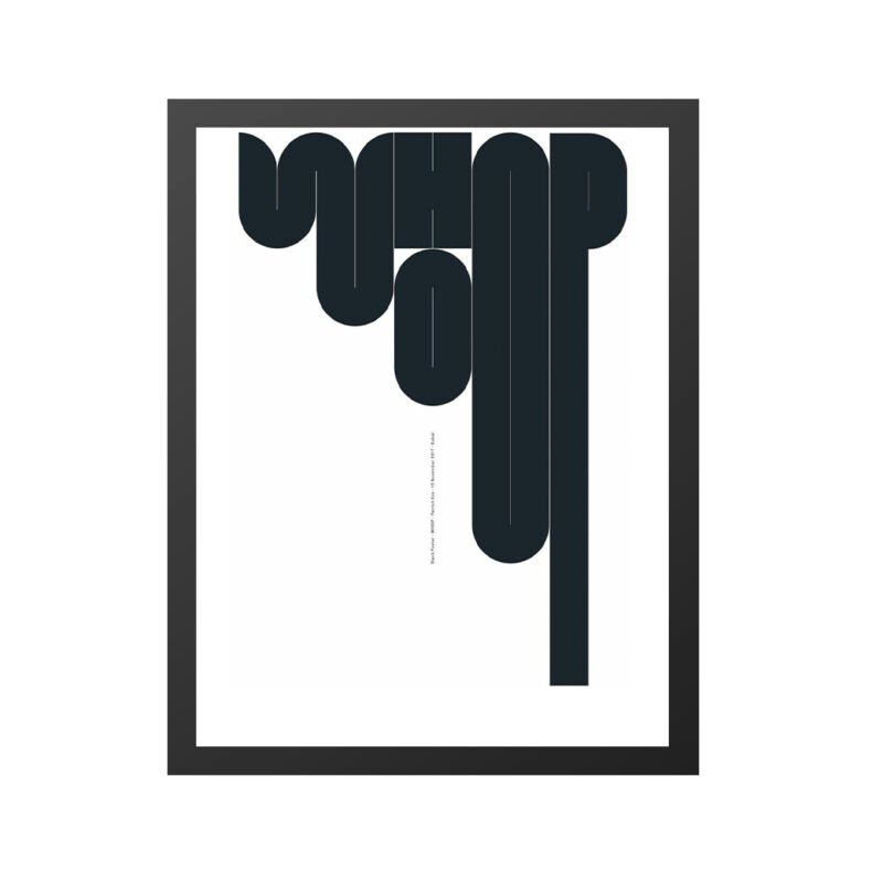 Large, stylized lowercase "g" and "o" integrated with an oversized exclamation mark. A minimalist black and white palette.