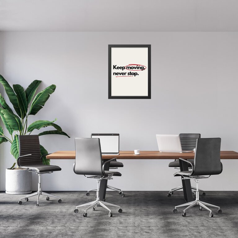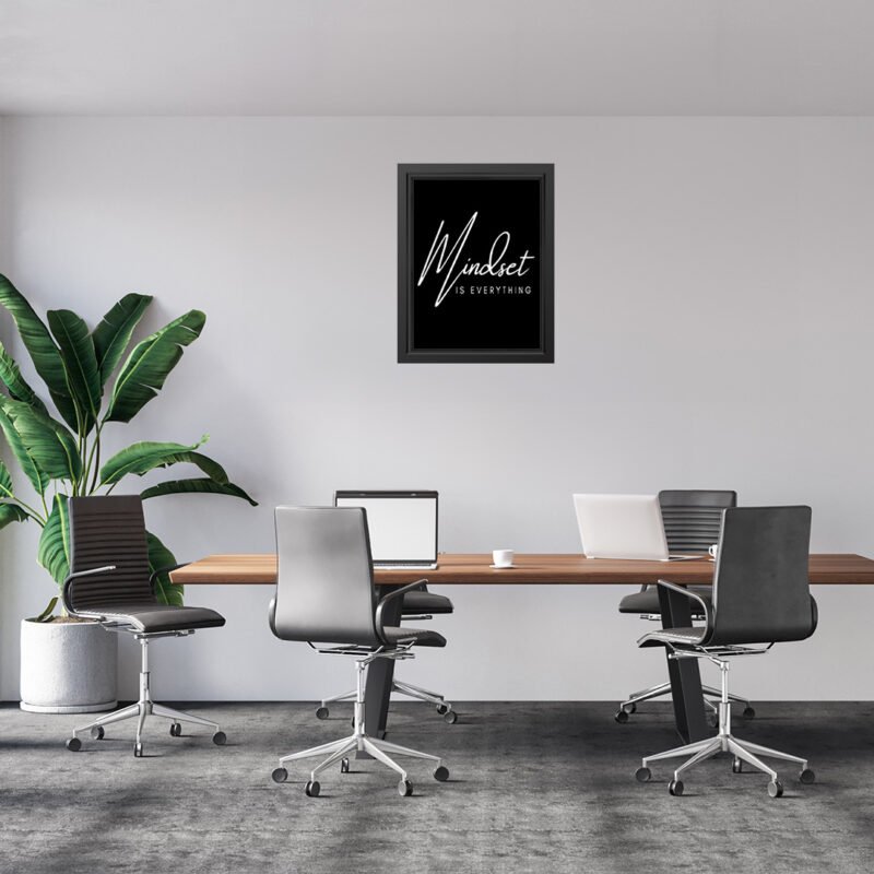 The framed design adds a crisp, clean touch to bedrooms, entryways, or office walls, offering both structure and serenity.
