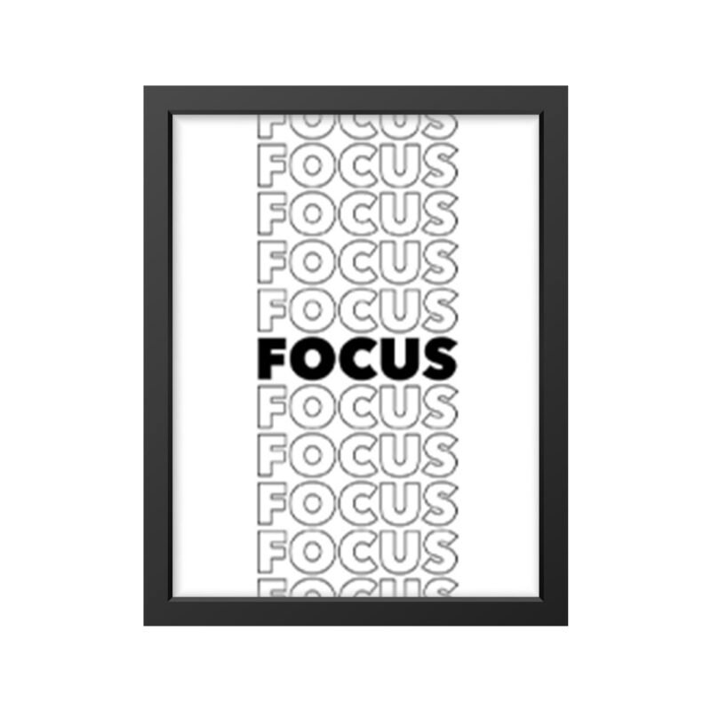 An eye-catching minimalist design that repeats the word "FOCUS" vertically — with one bold instance standing out from the rest. This poster is a symbolic reminder to block out the noise and center your attention. Ideal for home offices, creative studios, or study corners.