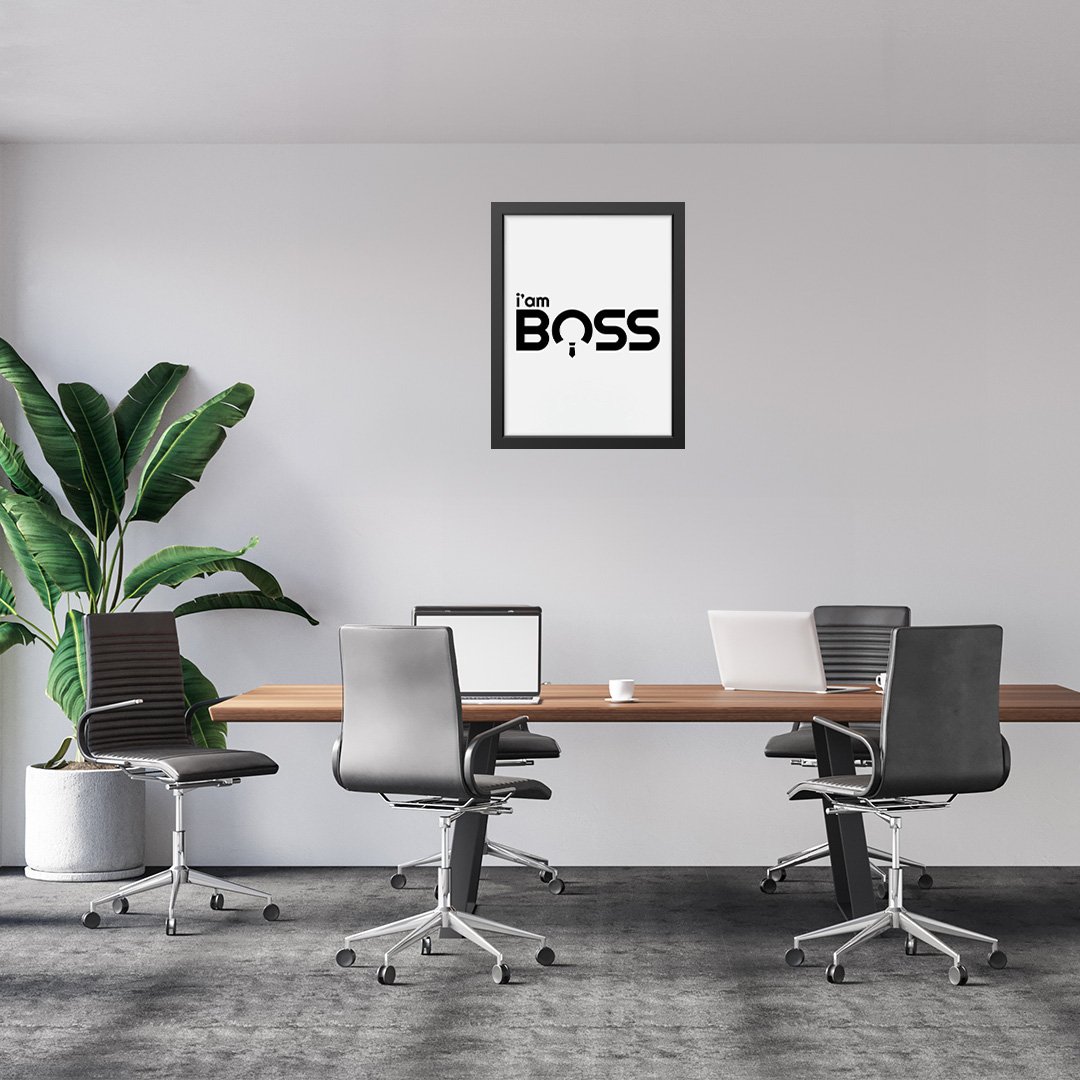 A modern and empowering typography poster featuring the bold phrase “I am Boss”. The creative design incorporates a tie within the word “BOSS,” symbolizing leadership, authority, and professionalism. Perfect for offices, startups, or home workspaces, this artwork inspires confidence and reminds you to take charge.