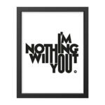 A bold and artistic framed typography poster featuring the heartfelt message “I’m Nothing Without You.” Designed with modern geometric lettering in black and white, this artwork is a perfect piece for bedrooms, living rooms, or as a thoughtful gift to express love and deep connection.